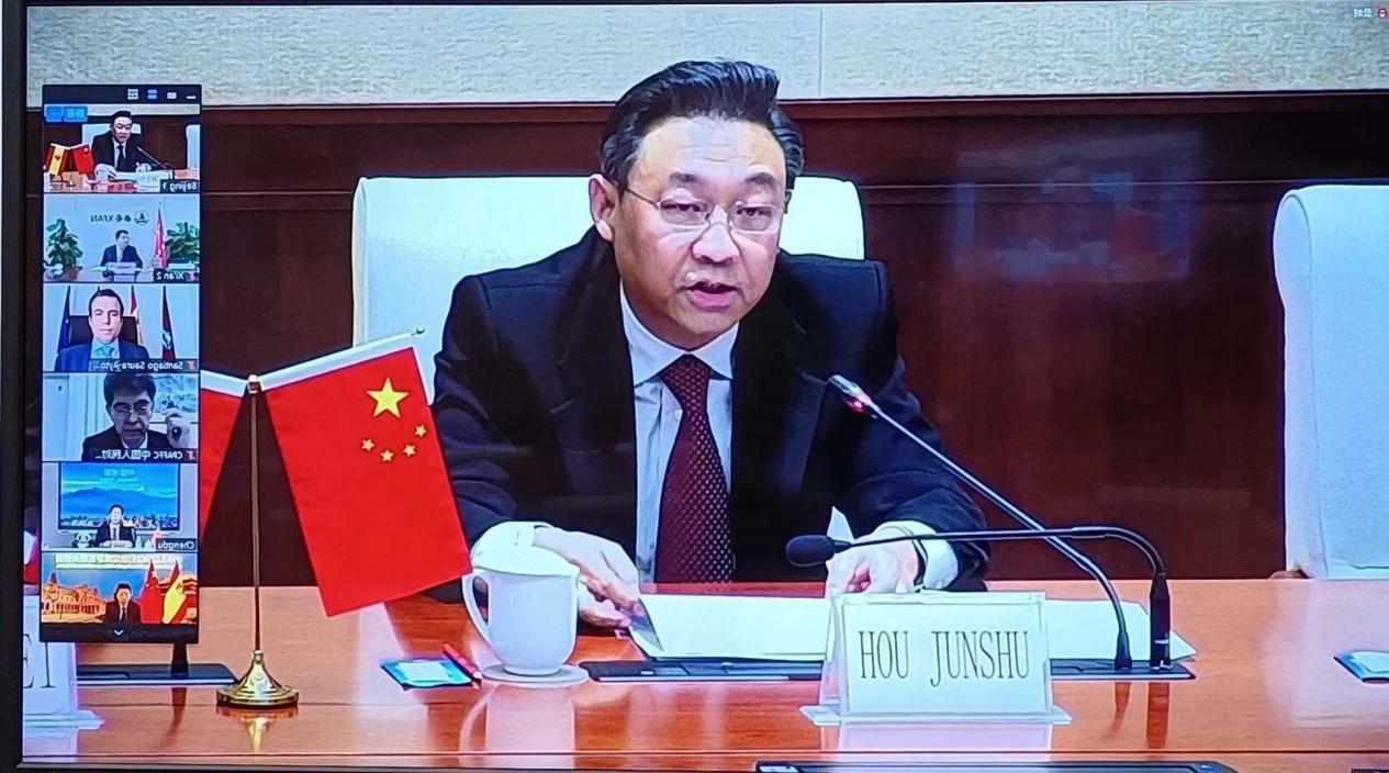 On November 19, Beijing was invited to participate in the online meeting on local cooperation of China-Spain Forum, at which Chinese and Spanish representatives discussed about such topics as digital economy, green economy, and smart city. President of the Chinese People's Association for Friendship with Foreign Countries Lin Songtian, Chairman of Spain-China Council Foundation Riberas, Chinese Ambassador to Spain Wu Haitao, Spanish Ambassador to China Rafael Dezcallar, and leaders of cities including Shanghai, Xi'an, Chengdu, Madrid, Barcelona, and Valencia attended the meeting. Hou Junshu, Vice Chairman of the Standing Committee of Beijing Municipal People's Congress, attended the meeting and gave a speech on behalf of Beijing.