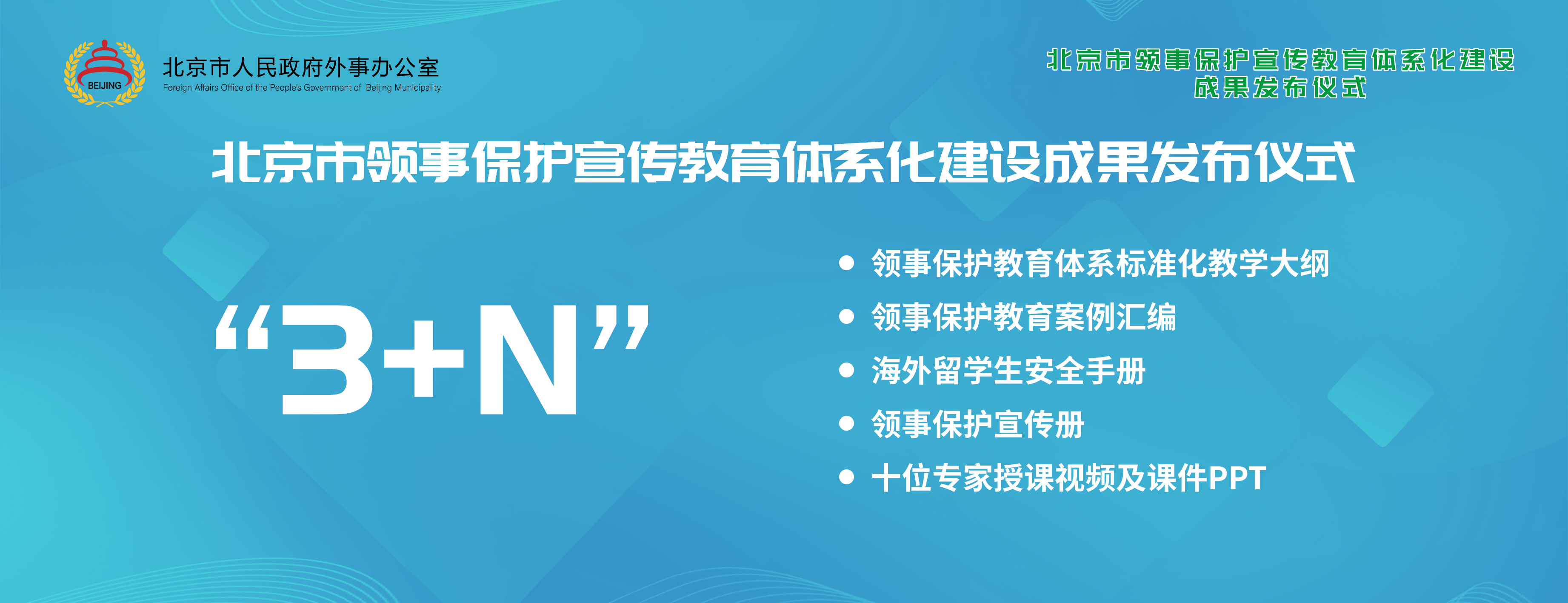 The Foreign Affairs Office of the People's Government of Beijing Municipality, with support and guidance from the Department of Consular Affairs of the Ministry of Foreign Affairs, has taken the lead in carrying out systematic popularization and education on consular protection nationwide to help address difficulties at the community level, such as lack of teachers, teaching materials, and methods. Now, a "3+N" system has been established. The "3" refers to a high-level teacher pool composed of more than 40 experts in seven fields including consular protection, culture, law, and psychology, a professional, targeted, and universal "Consular Protection Education System Standardized Syllabus", as well as a collection of typical consular protection cases for reference in recent years; the "N" refers to a series of supporting educational products including "Overseas Student Safety Manual".