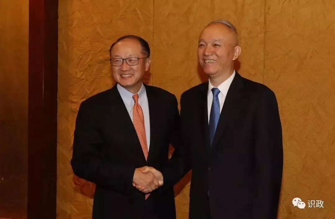 蔡奇與世行行長金墉親切握手