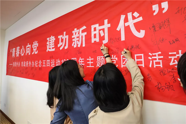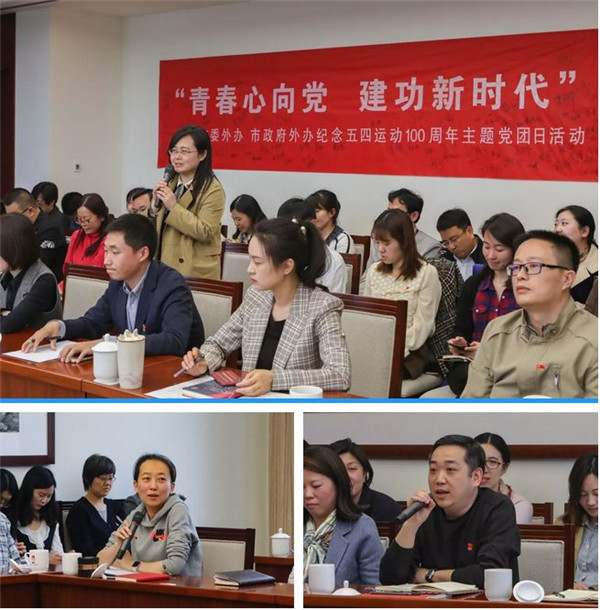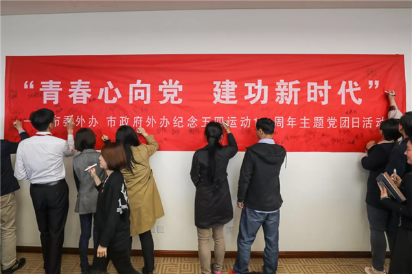 4月30日,市委外辦市政府外辦機關黨委和機關團委共同組織開展了“青春心向黨 建功新時代”青年干部座談會,紀念五四運動100周年。青年干部代表圍繞學習貫徹習近平總書記在紀念五四運動100周年紀念大會、第二屆“一帶一路”國際高峰合作論壇和北京世界園藝博覽會開幕式上的重要講話精神,結合剛剛完成的“一帶一路”國際合作高峰論壇服務保障工作,交流經驗體會、分享成長感悟。