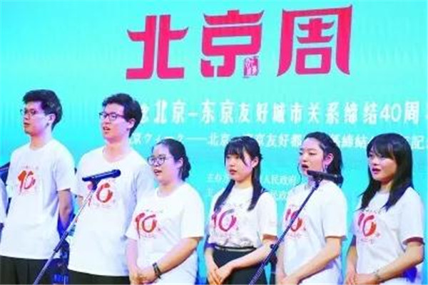 昨天,紀念北京市與東京都締結友好城市關系40周年“北京周”活動在東京秋葉原會展中心舉行。圖為中日小大使共同演唱歌曲《大海啊故鄉》,將活動推向高潮。北京日報記者 戴冰攝