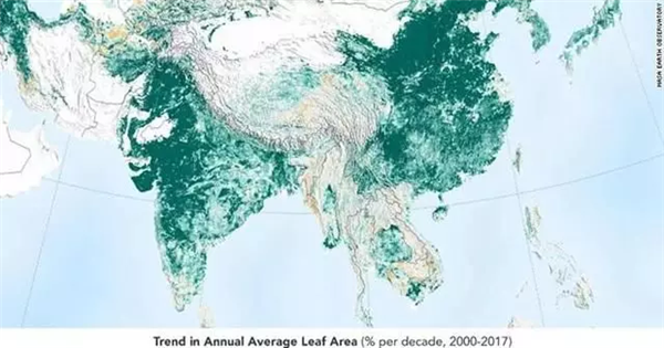 前不久,美國NASA在社交媒體上向中國致謝,因其衛星收集的數據顯示:過去17年里,中國的植被增加量占到全球植被總增量的25%以上,位居全球首位。