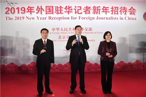 1月17日晚,外交部與北京市人民政府在國家大劇院聯合舉辦2019年外國駐華記者新年招待會。外交部副部長秦剛,北京市委常委、常務副市長林克慶出席。外交部發言人、 新聞司司長陸慷主持。