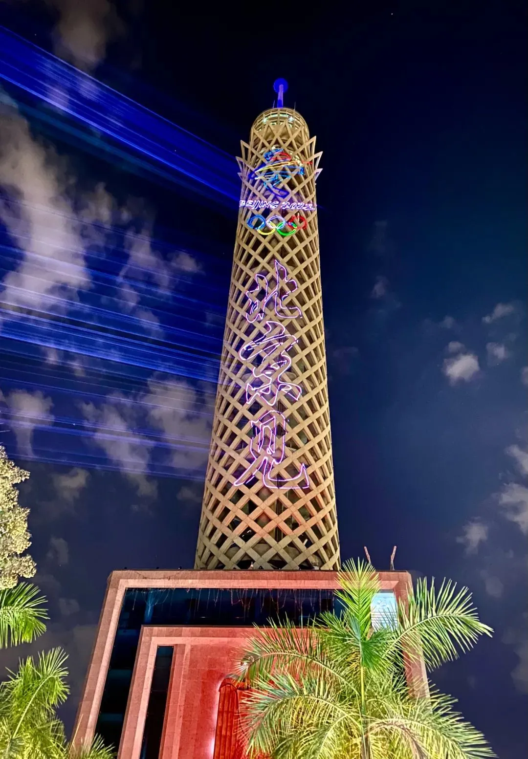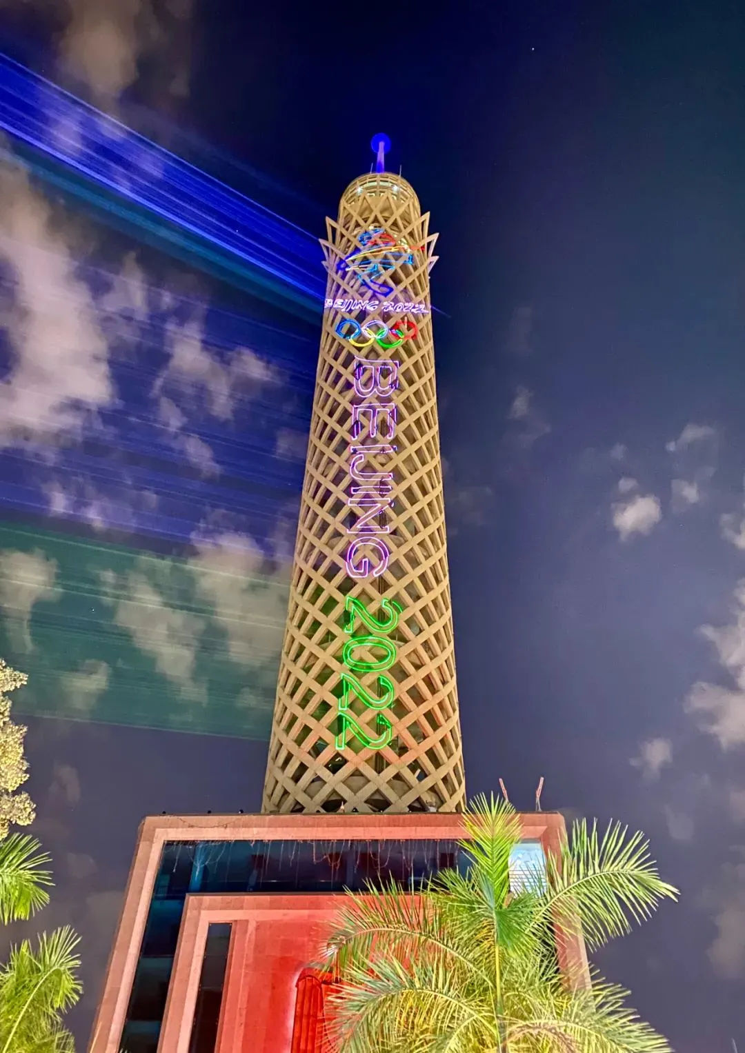 當地時間1月24日晚,在北京冬奧會開幕倒計時10天之際,埃及首都開羅地標建筑開羅塔上演燈光秀,以中、英、阿三種語言將“北京冬奧會”“北京2022”“10天后北京見”等文字和北京冬奧會會徽投射在塔身,表達對北京冬奧會的祝愿和支持。中國駐埃及大使廖力強、埃及奧委會秘書長謝里夫·阿勒揚、開羅塔管理委員會公共關系主任哈尼·阿塔拉出席燈光秀啟動儀式。