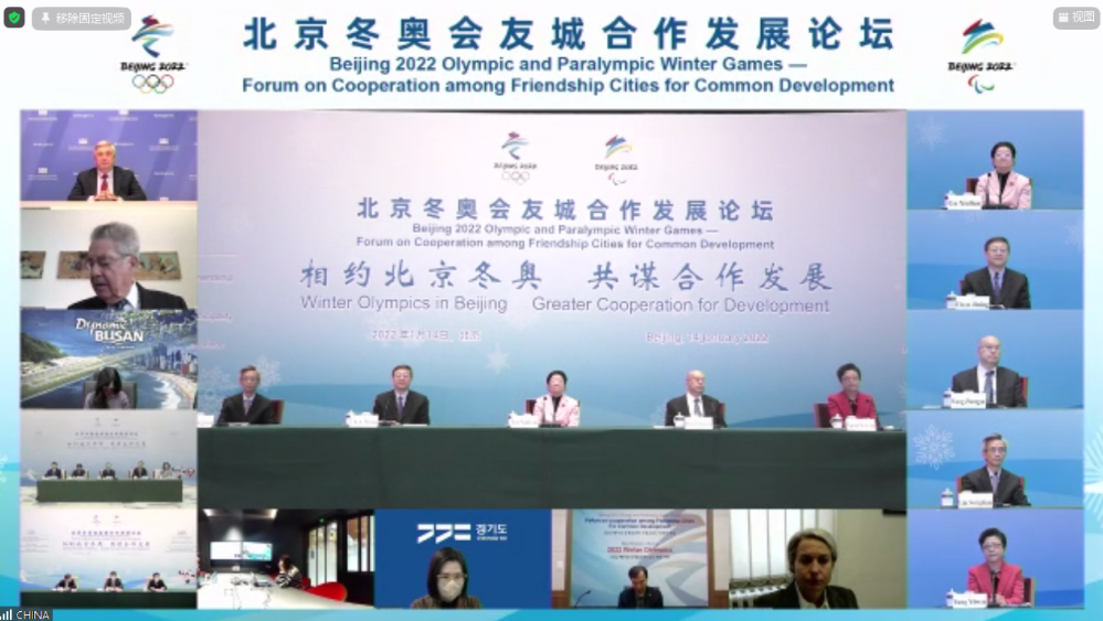 1月14日,由中國人民對外友好協會與北京市、河北省人民政府共同主辦的“北京冬奧會友城合作發展論壇”以線上線下相結合形式成功舉行,來自亞非歐拉四大洲23個國家的72個友好城市代表約200人通過線上線下形式參加。共同為即將開幕的北京冬奧會和冬殘奧會祝福、助威。