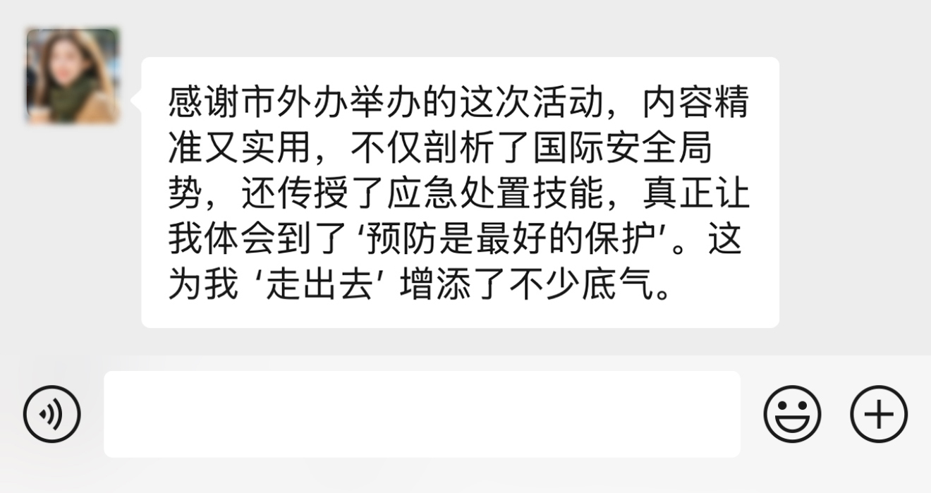 留學生代表表示:“這次活動對我們來說真的太及時、太有用了!讓我們在異國他鄉求學時,心里多了一份踏實和安全感。非常感謝市外辦舉辦這樣有意義的活動,希望以后能有更多類似的交流和幫助!”