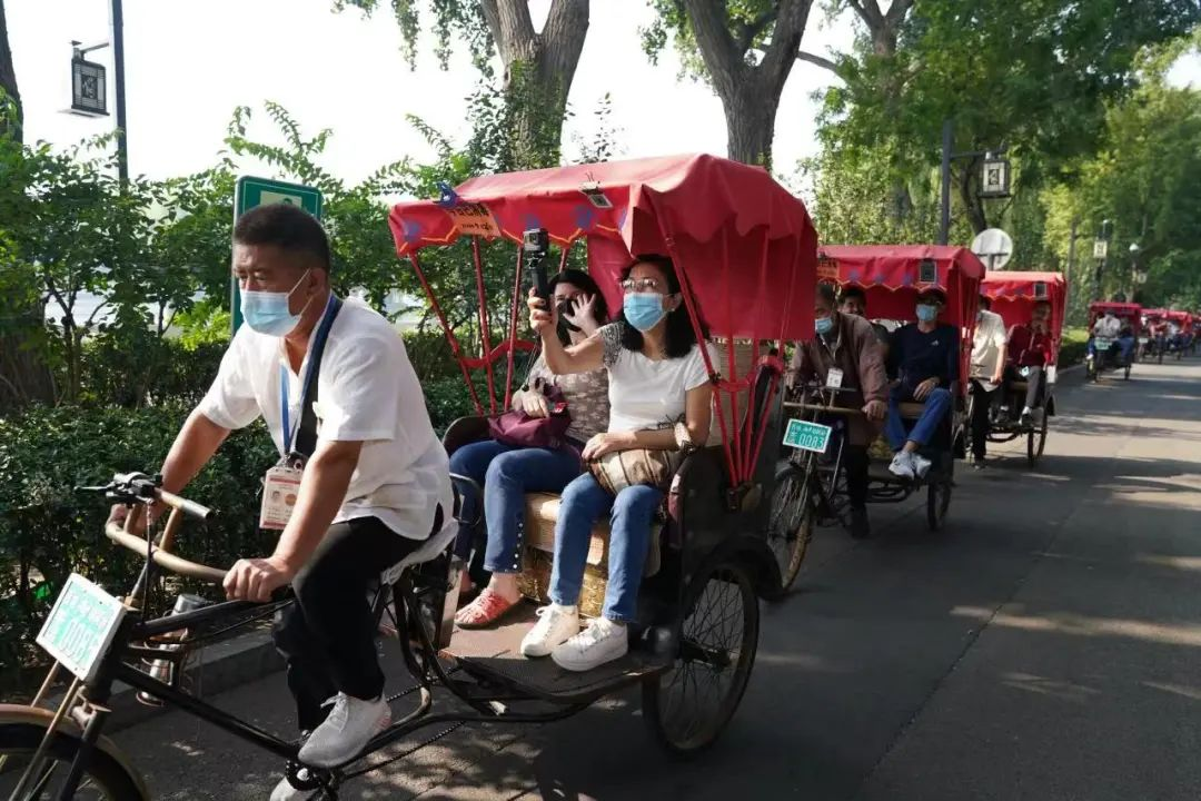 蔚藍的天空,幾只飛鳥掠過,寧靜而美好。外國記者們坐上黃包車,穿游在胡同里,觸摸歷史脈搏,感受時代變遷。車鈴叮鈴間,胡同的煙火氣撲面而來。沿途不時有居民和游客路過,仿佛是受到他們愜意笑容的感染,外國記者們也不時發出陣陣笑聲。