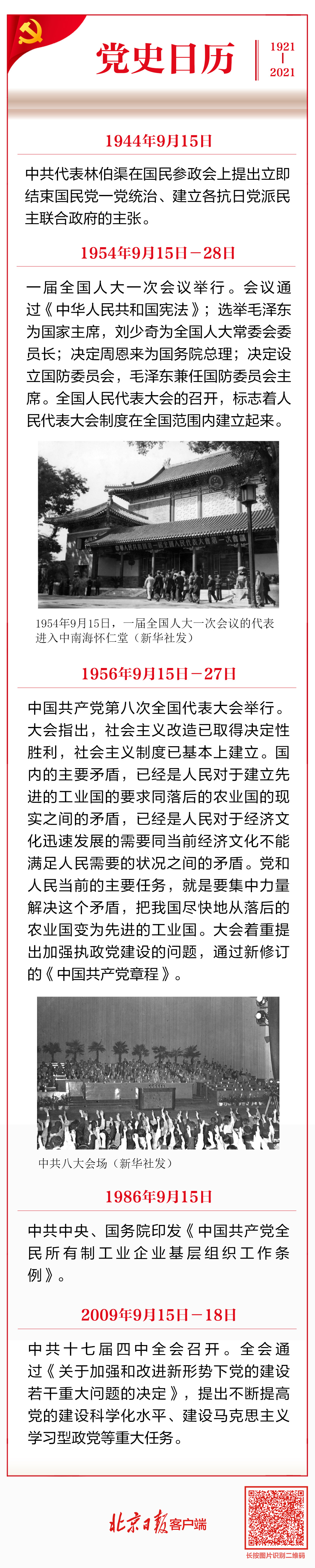 黨史日歷(9月15日)| 一屆全國人大一次會議舉行