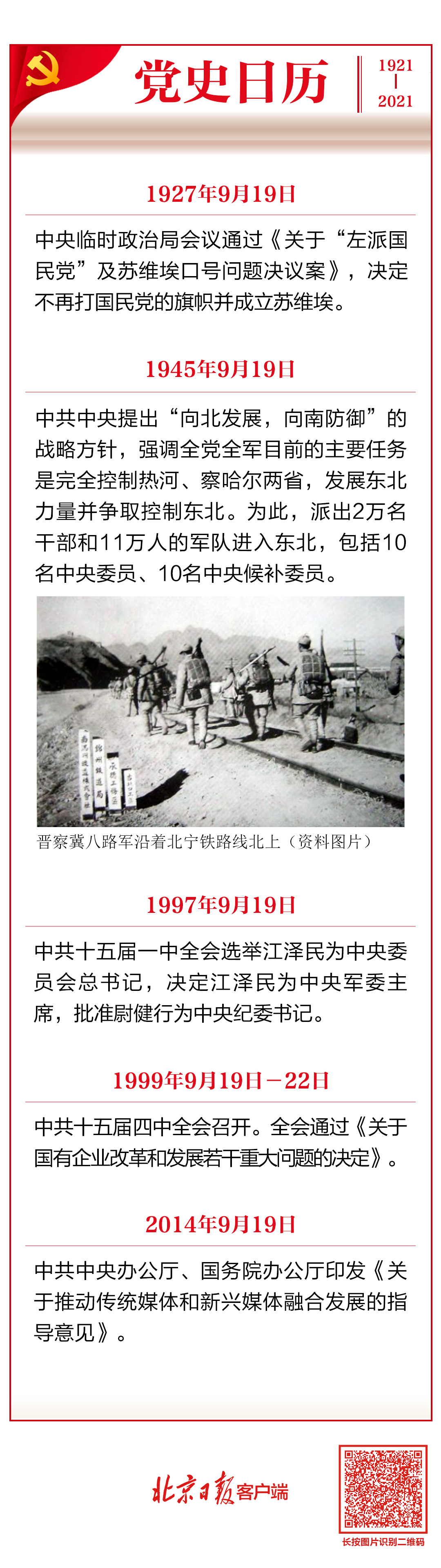 黨史日歷(9月19日)| 提出“向北發展,向南防御”