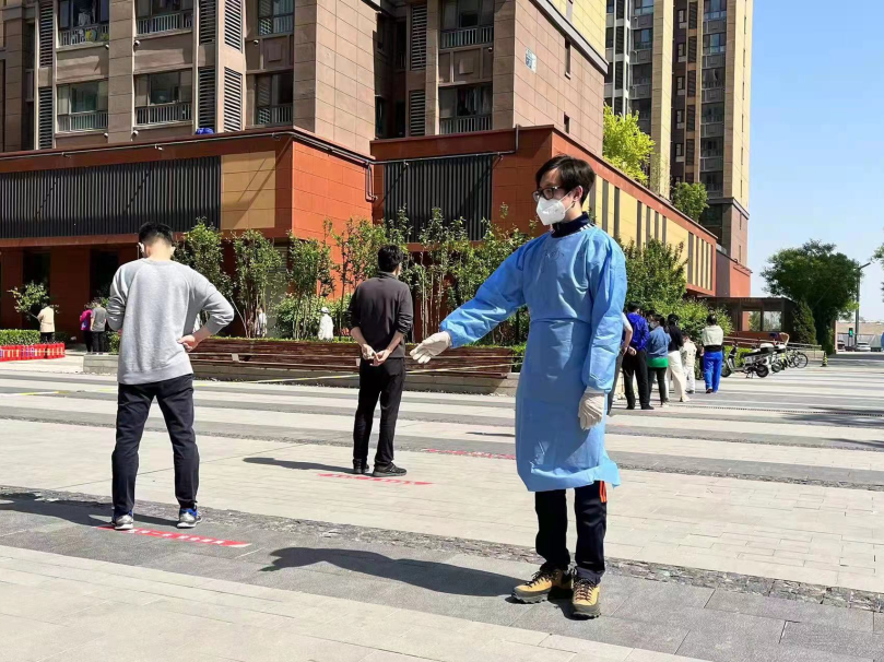 翻譯中心周鑫鵬在社區核酸檢測現場維持秩序